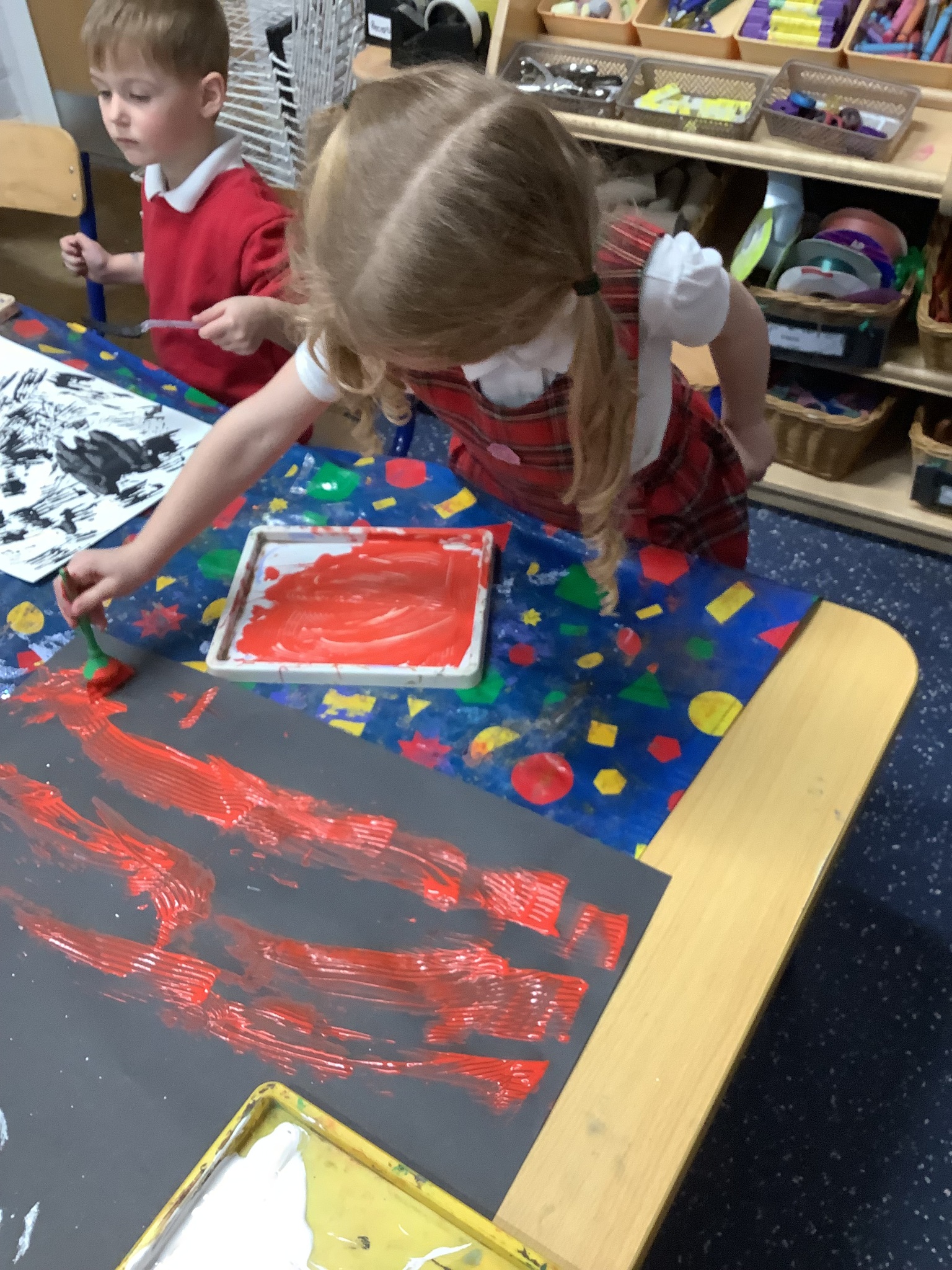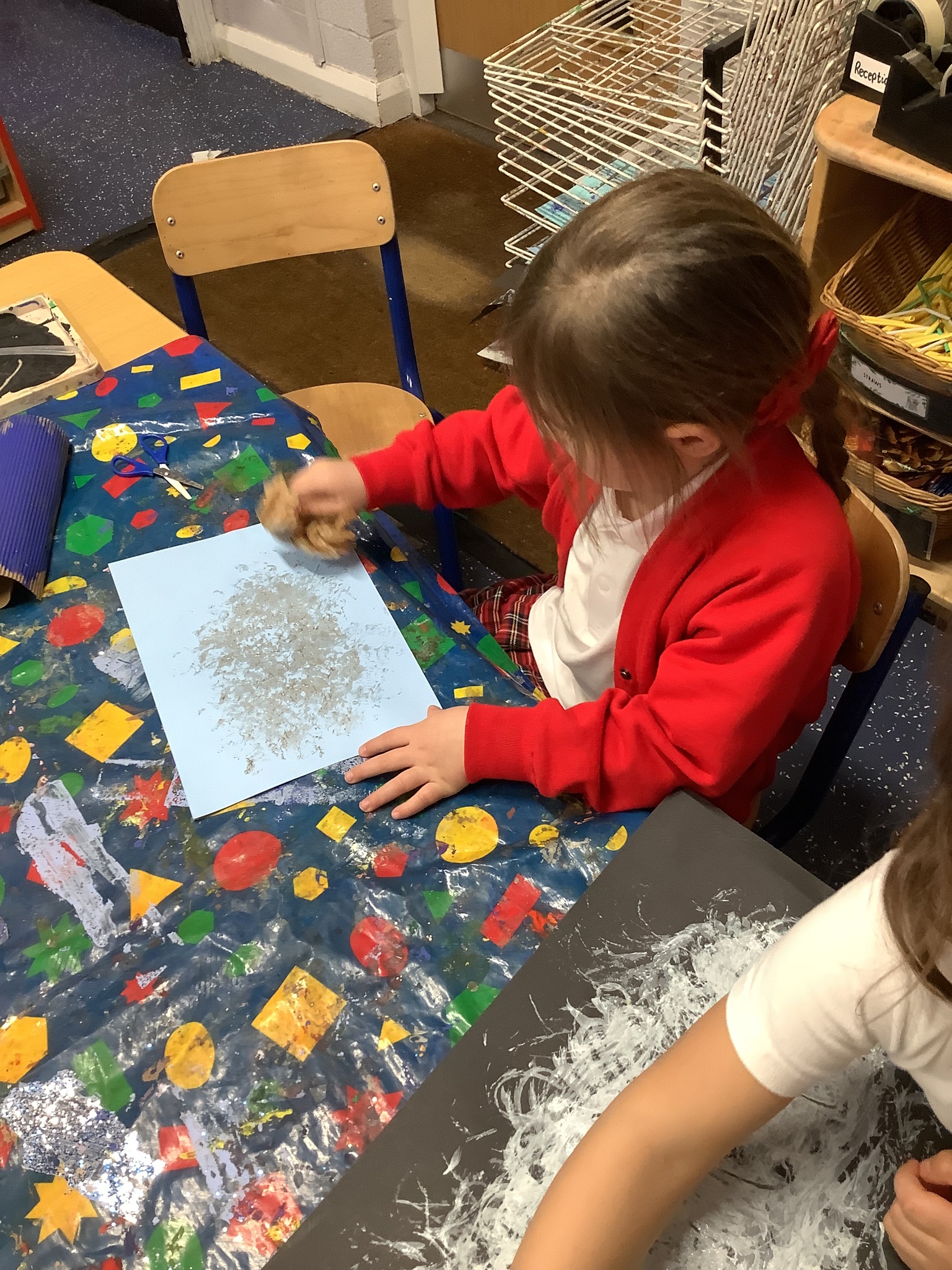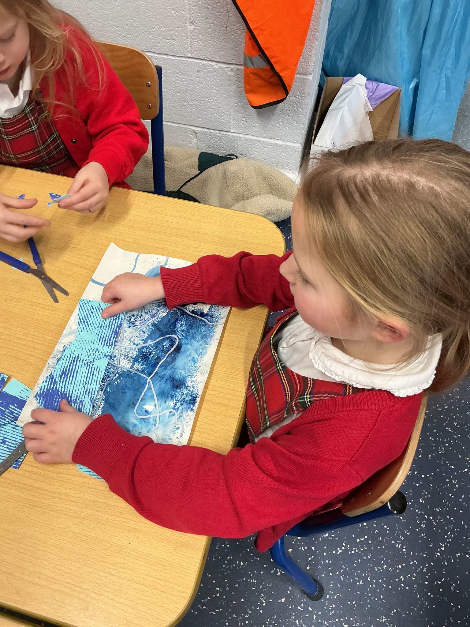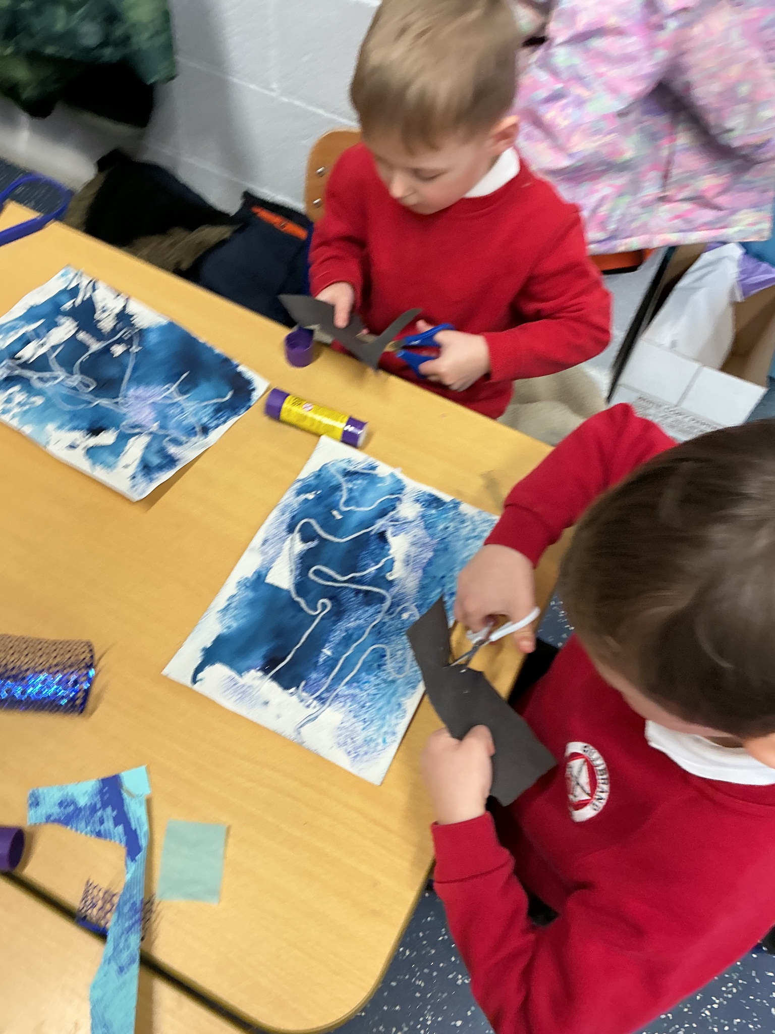 The children began by discussing the fascinating animals that live in this icy environment and the special physical features that help them survive. They explored different textures, comparing the smooth, blubbery skin of whales, the soft feathers of penguins and the shiny, scaly skin of fish. Using a range of materials found in the classroom, the children created patterns that reflected these textures.