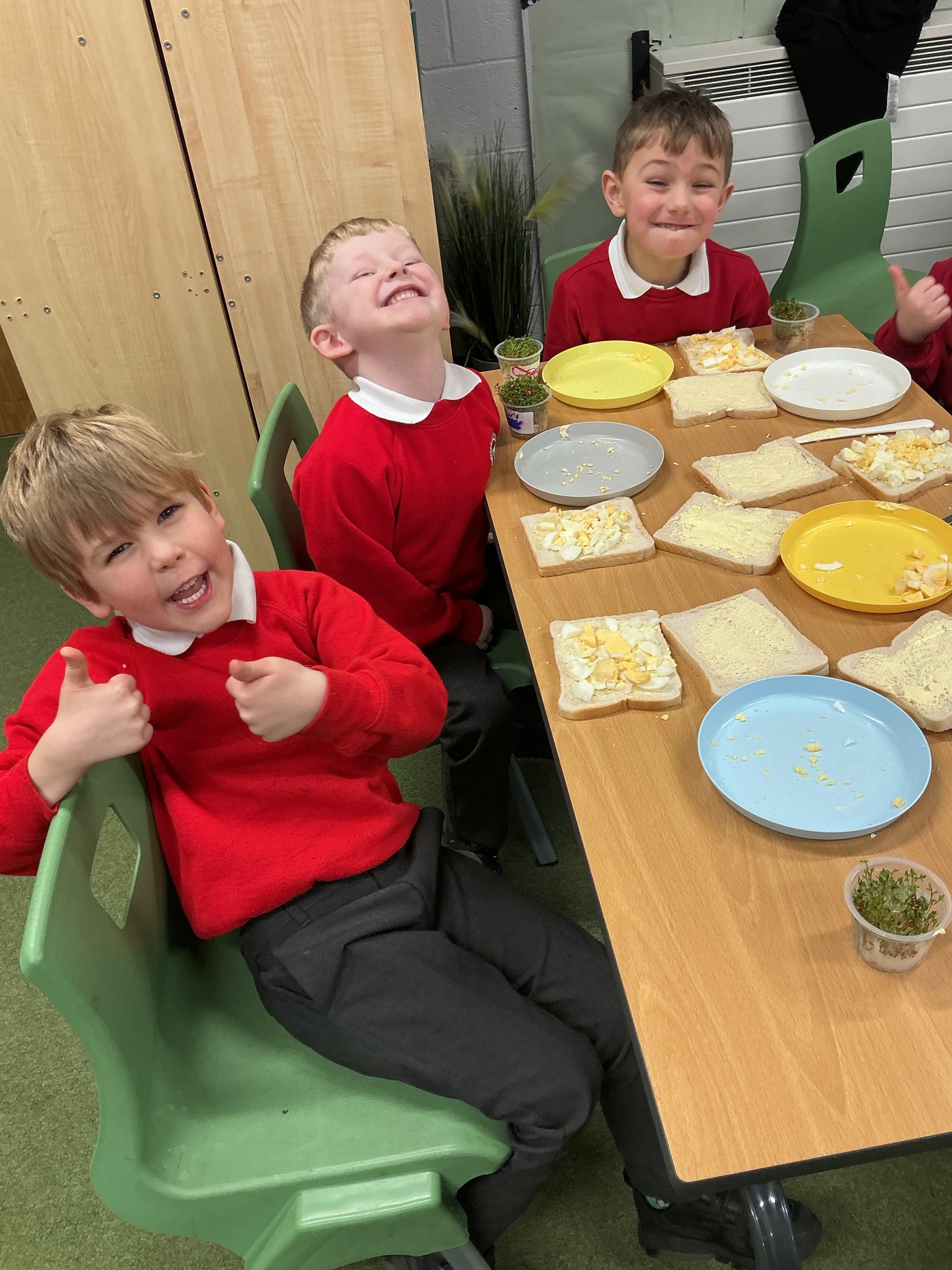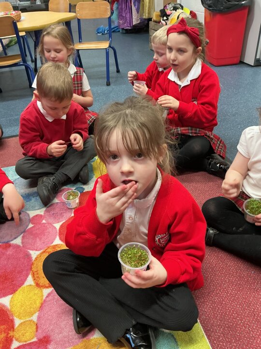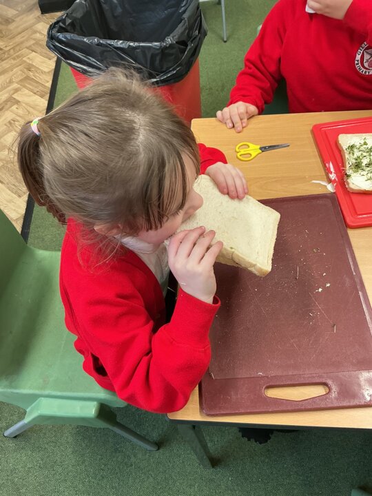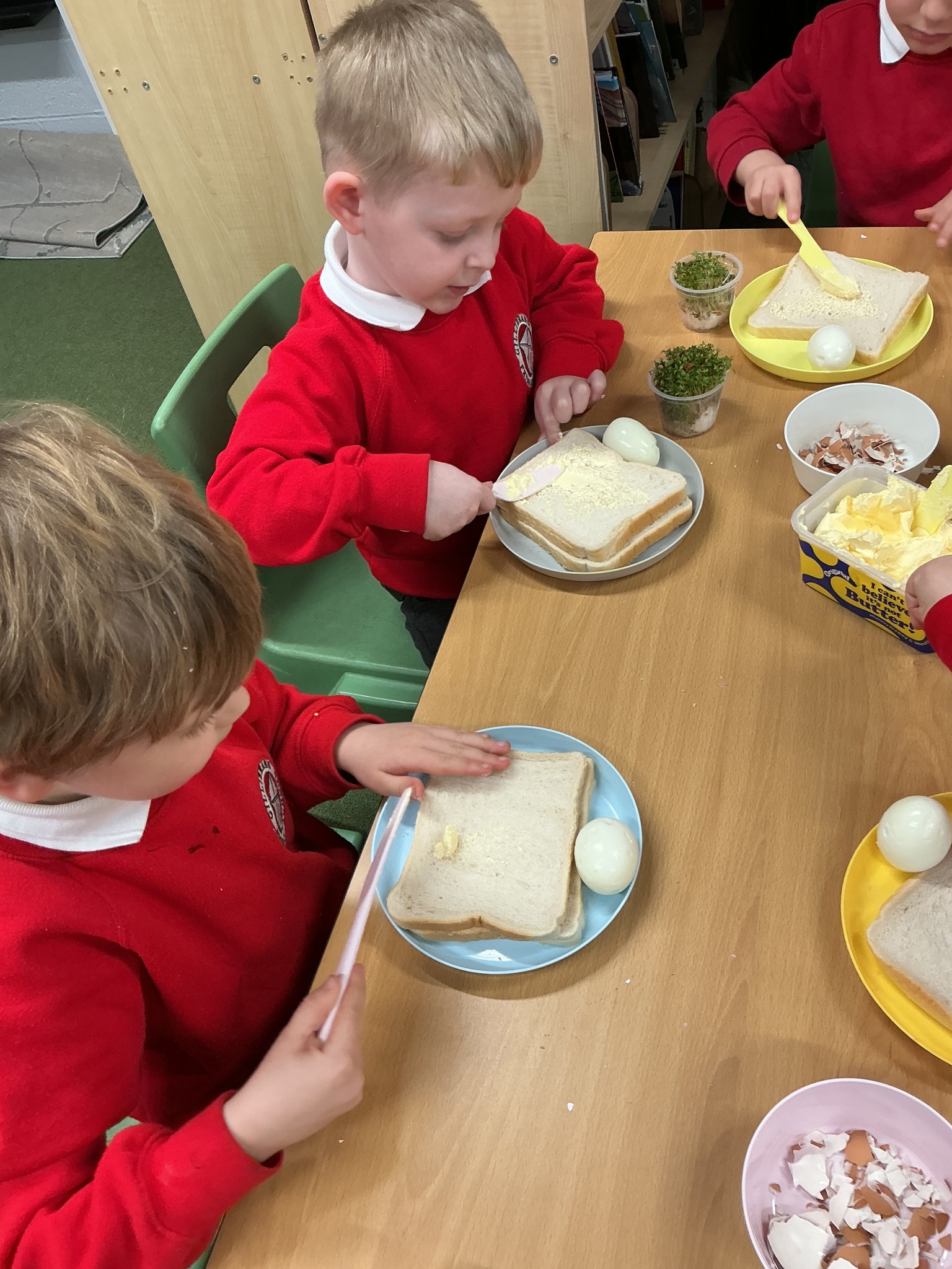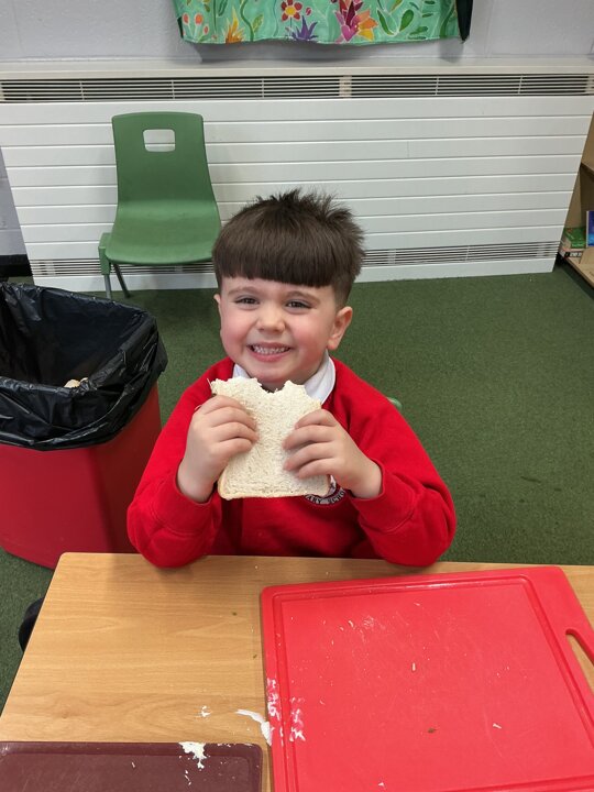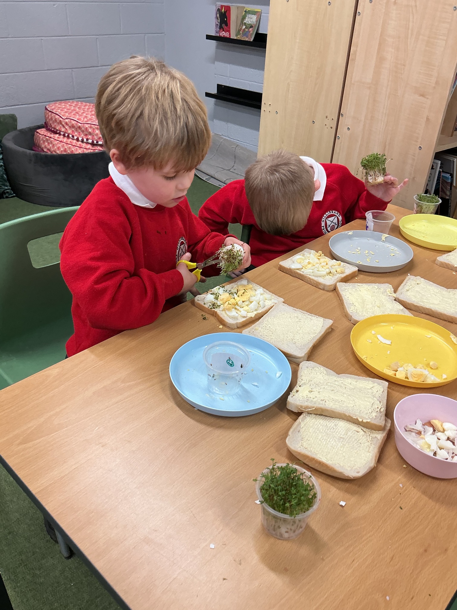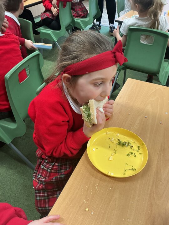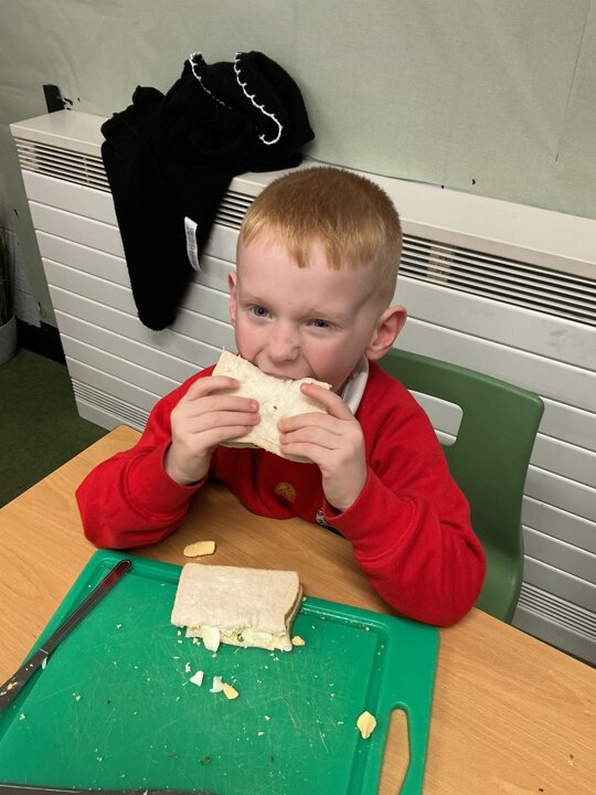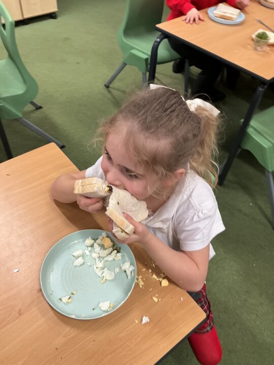 Reception class have been developing their fine motor skills through a fun and practical cooking activity. The children made their own egg and cress sandwiches using cress they had grown themselves in class.