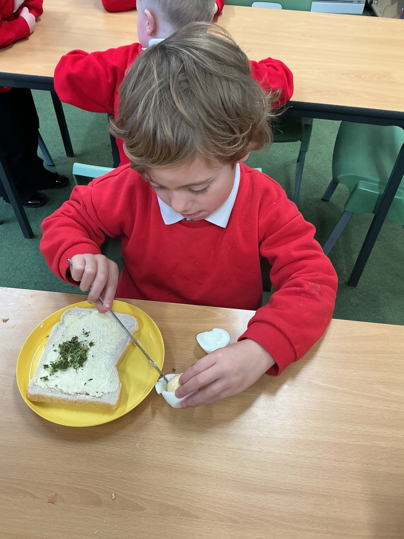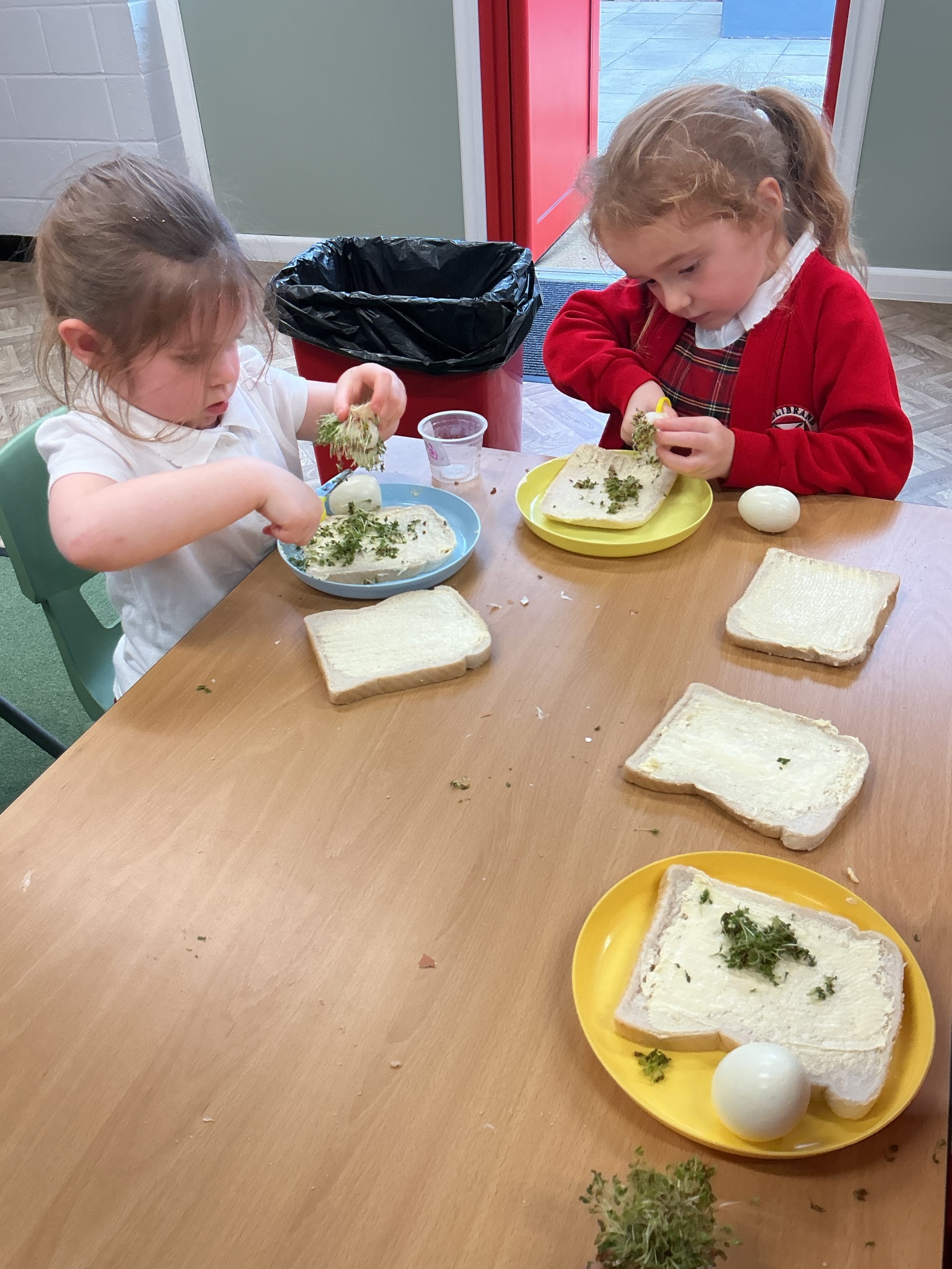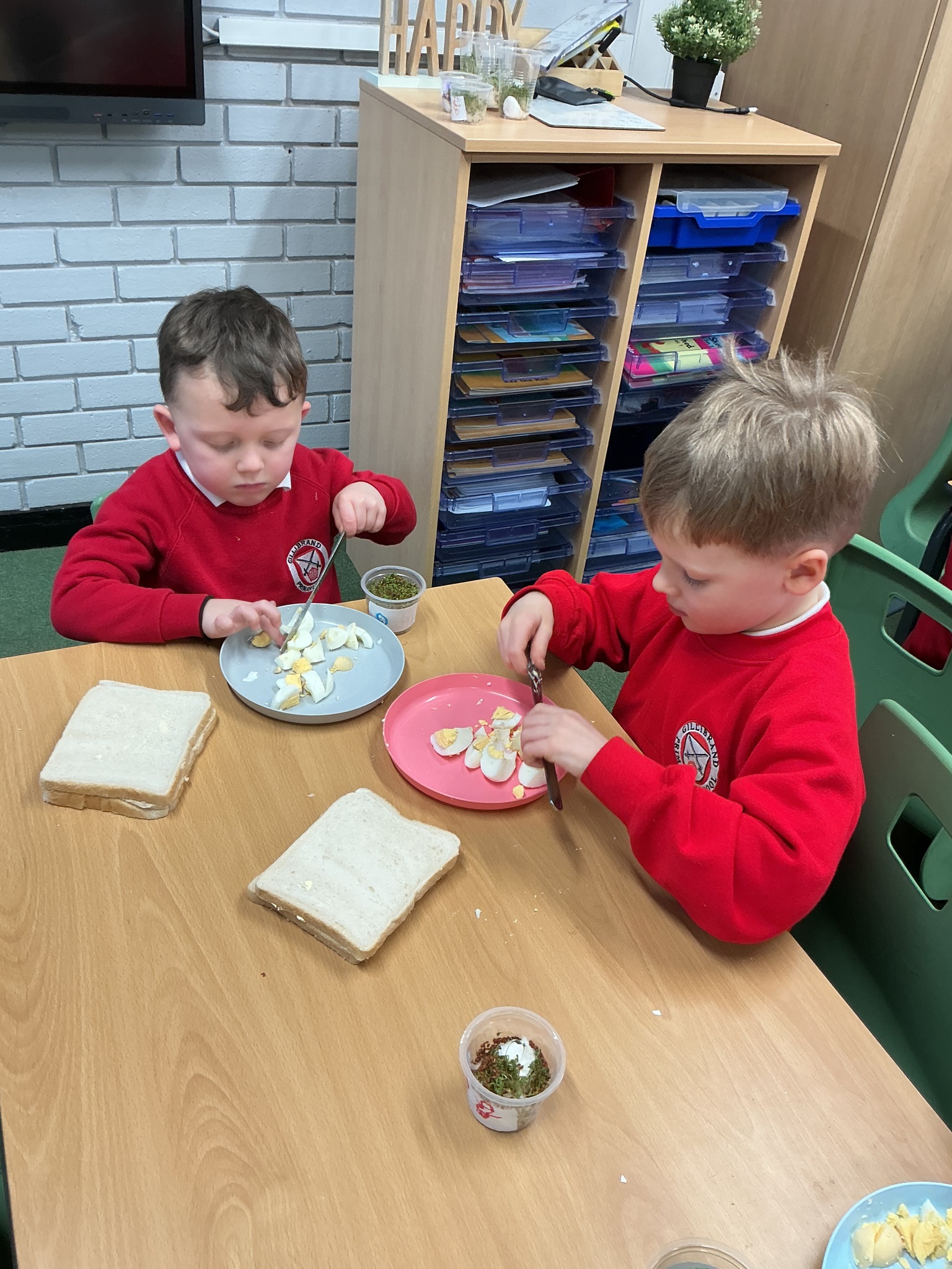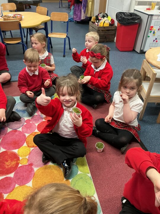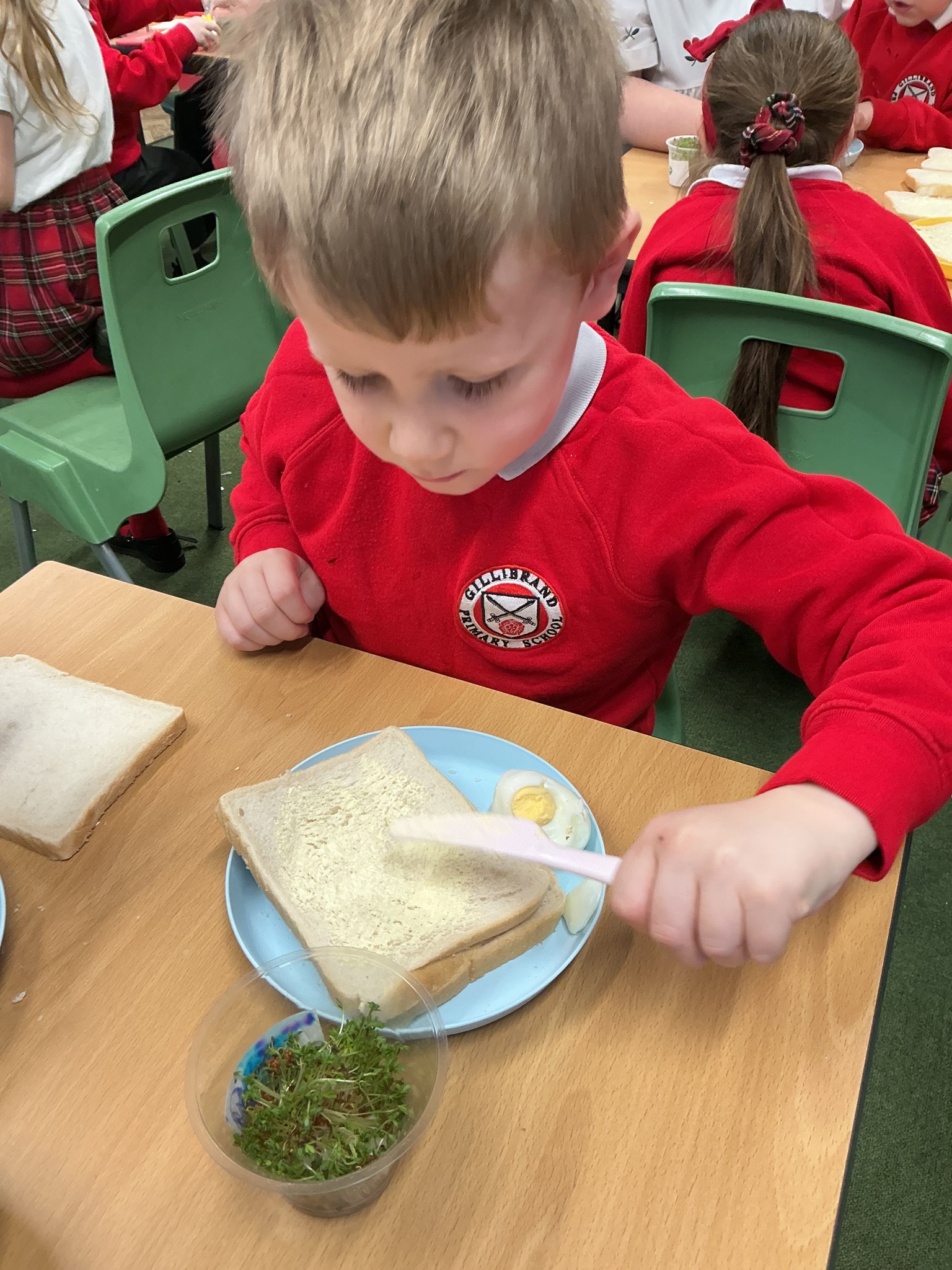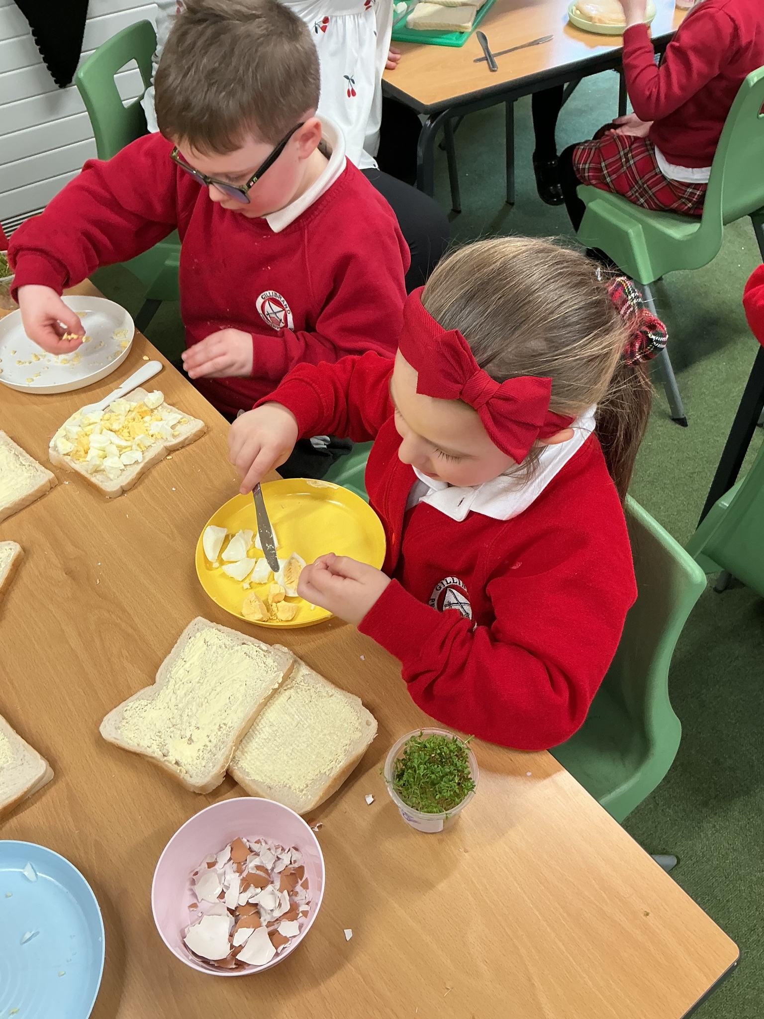 Reception class have been developing their fine motor skills through a fun and practical cooking activity. The children made their own egg and cress sandwiches using cress they had grown themselves in class.