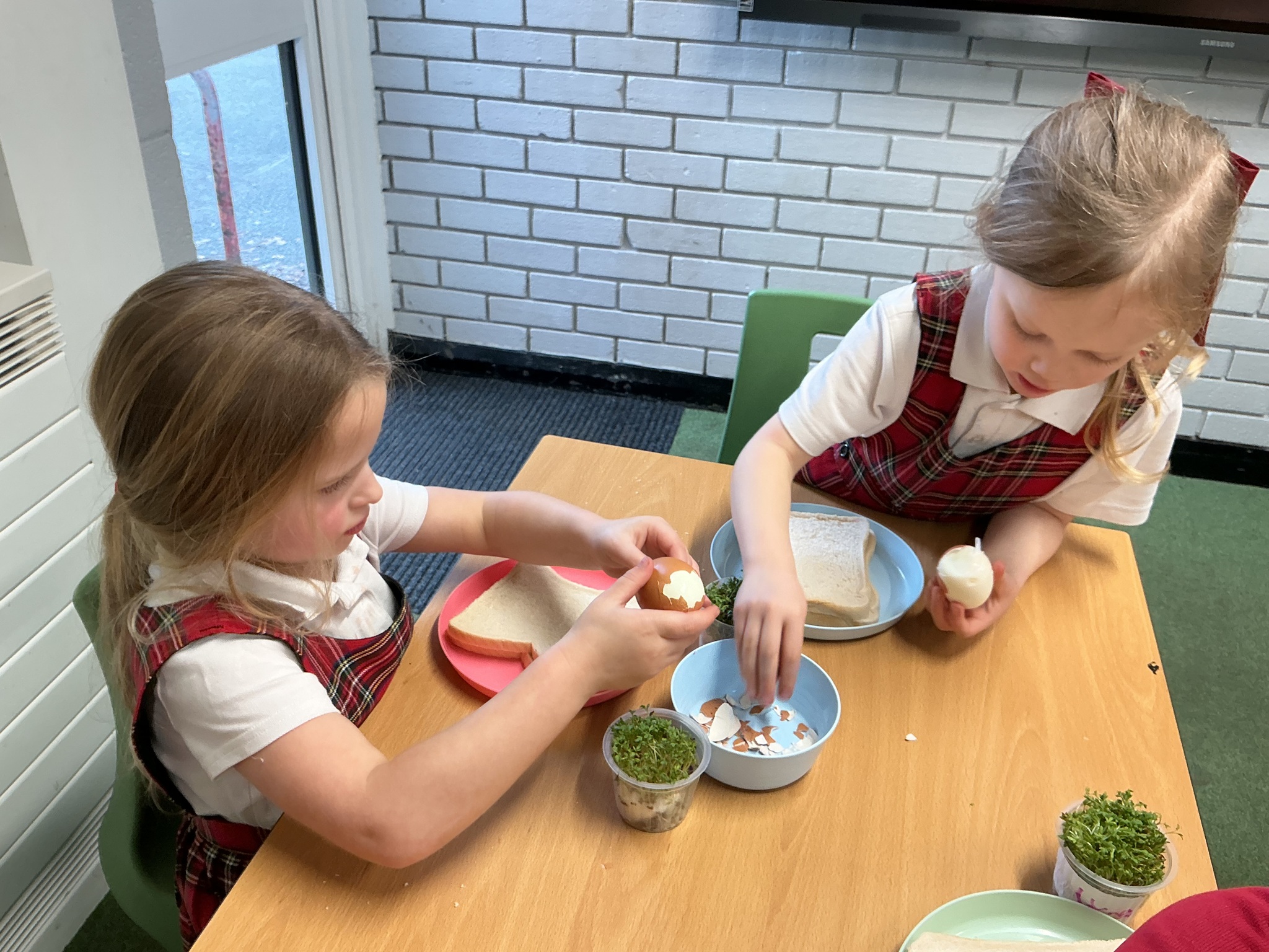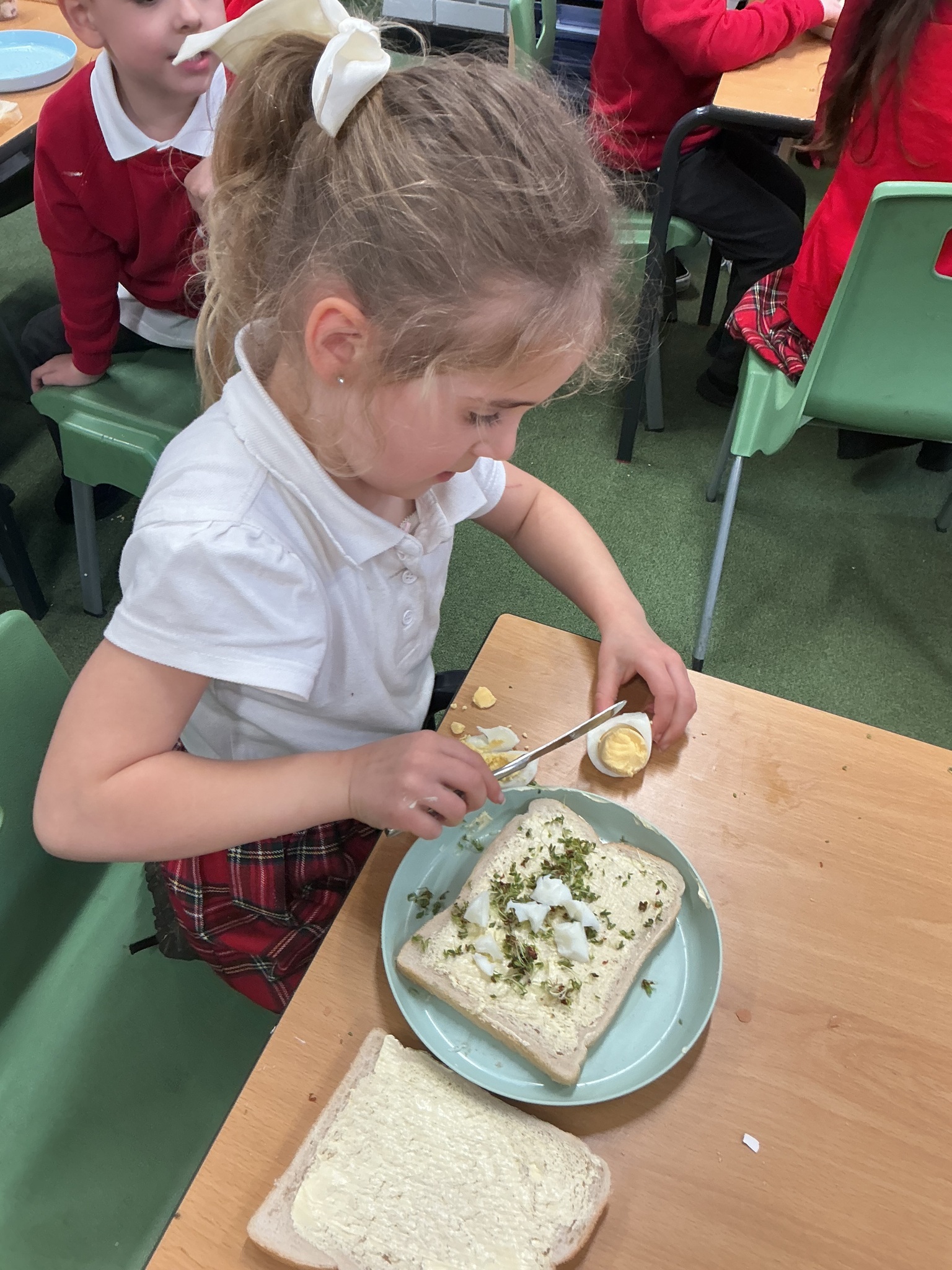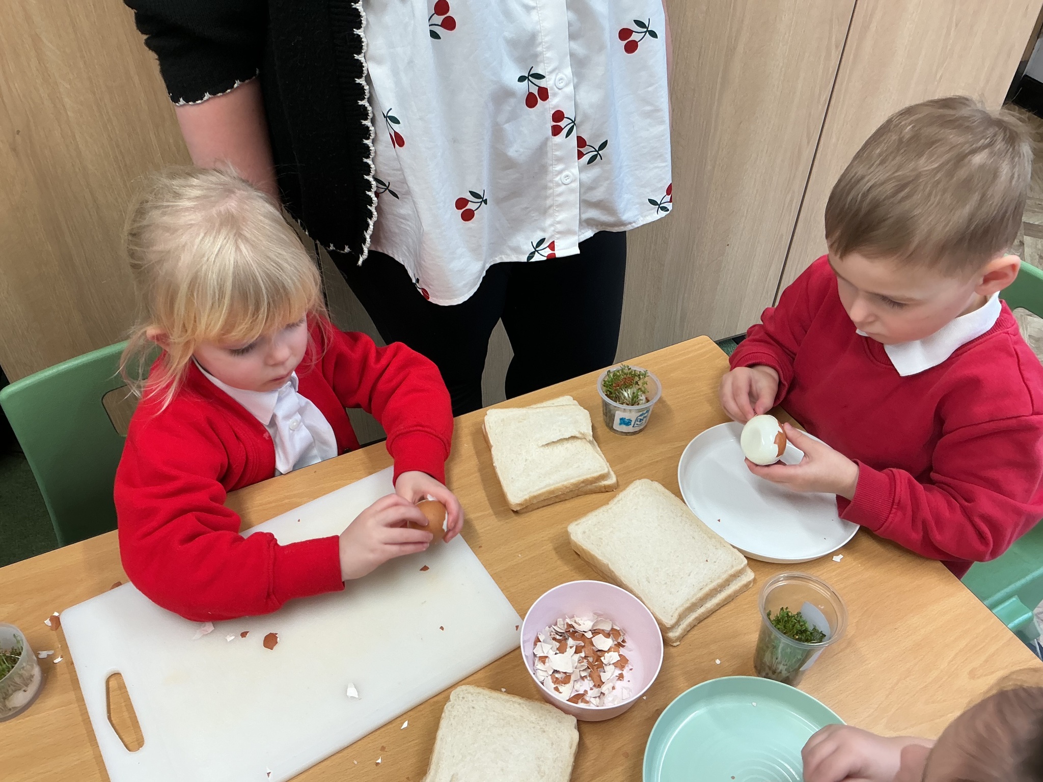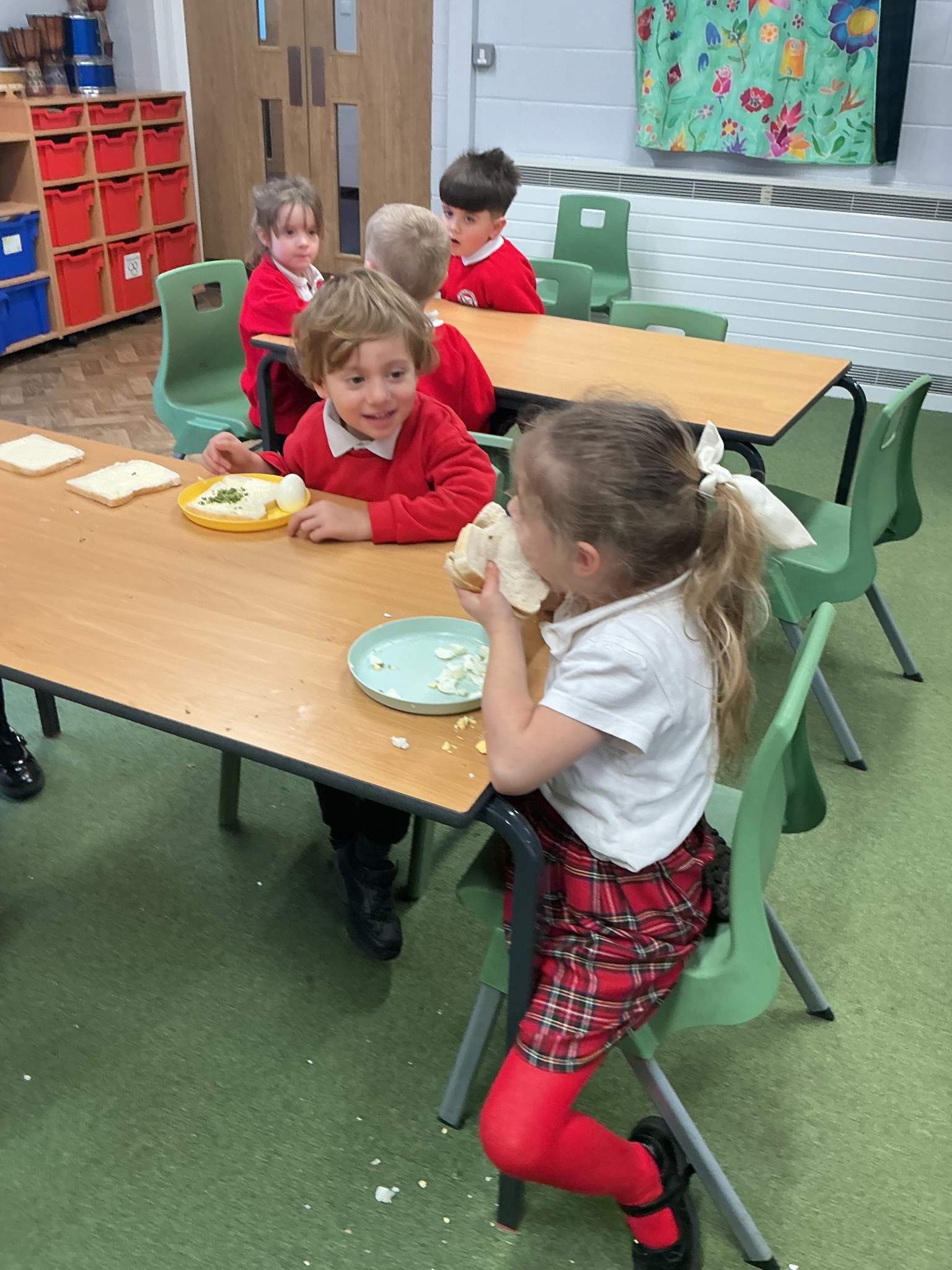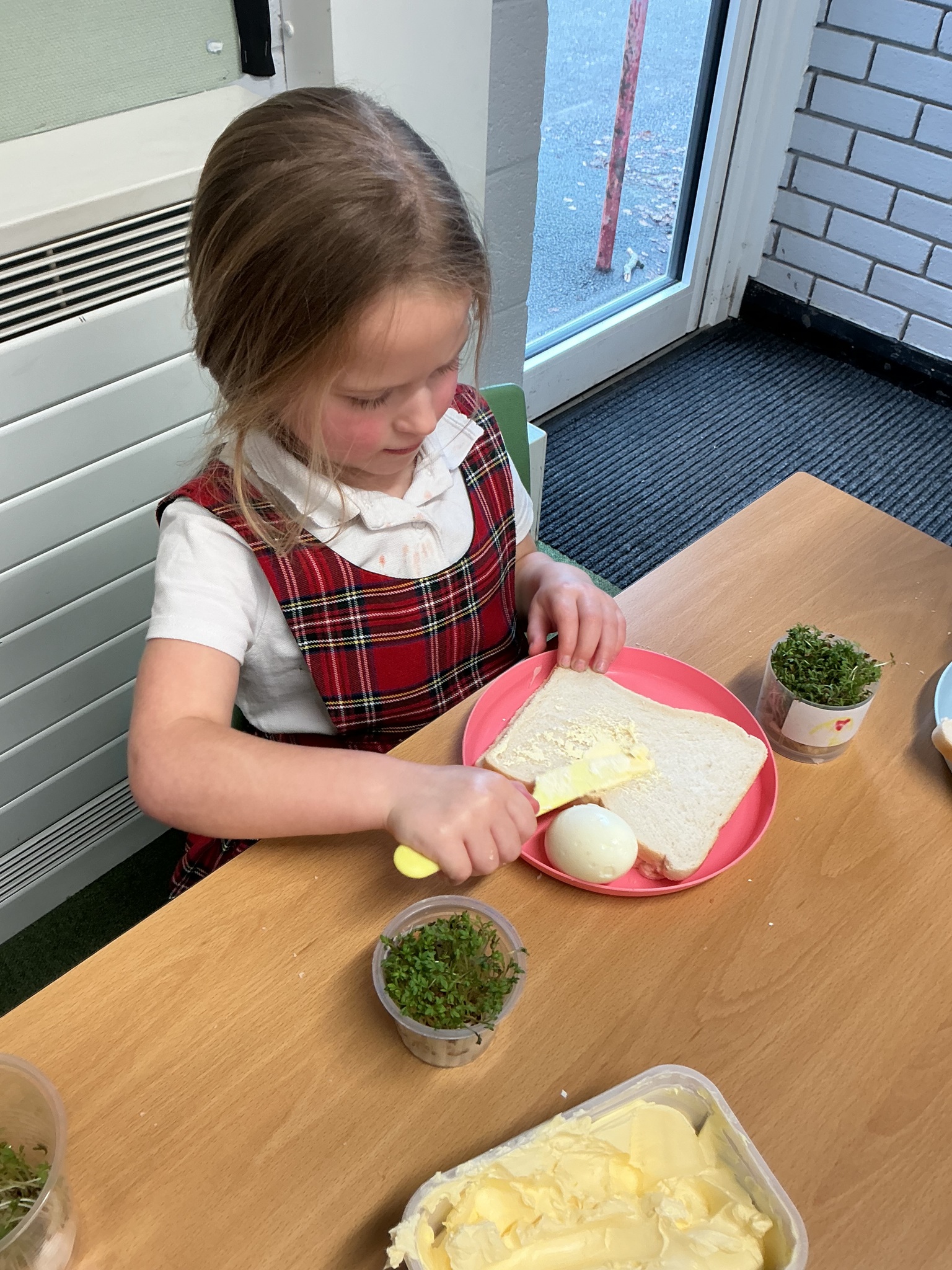 Reception class have been developing their fine motor skills through a fun and practical cooking activity. The children made their own egg and cress sandwiches using cress they had grown themselves in class.