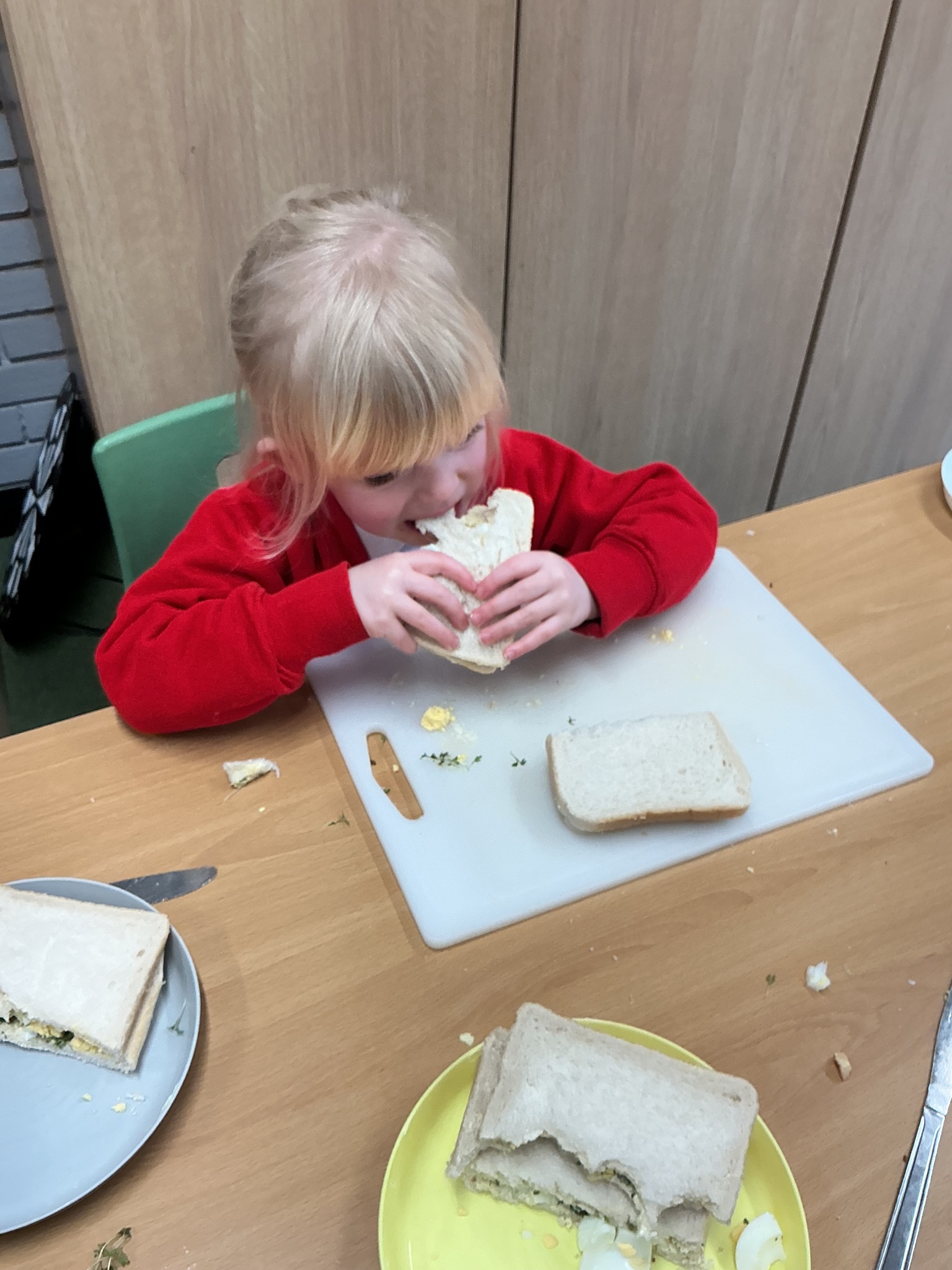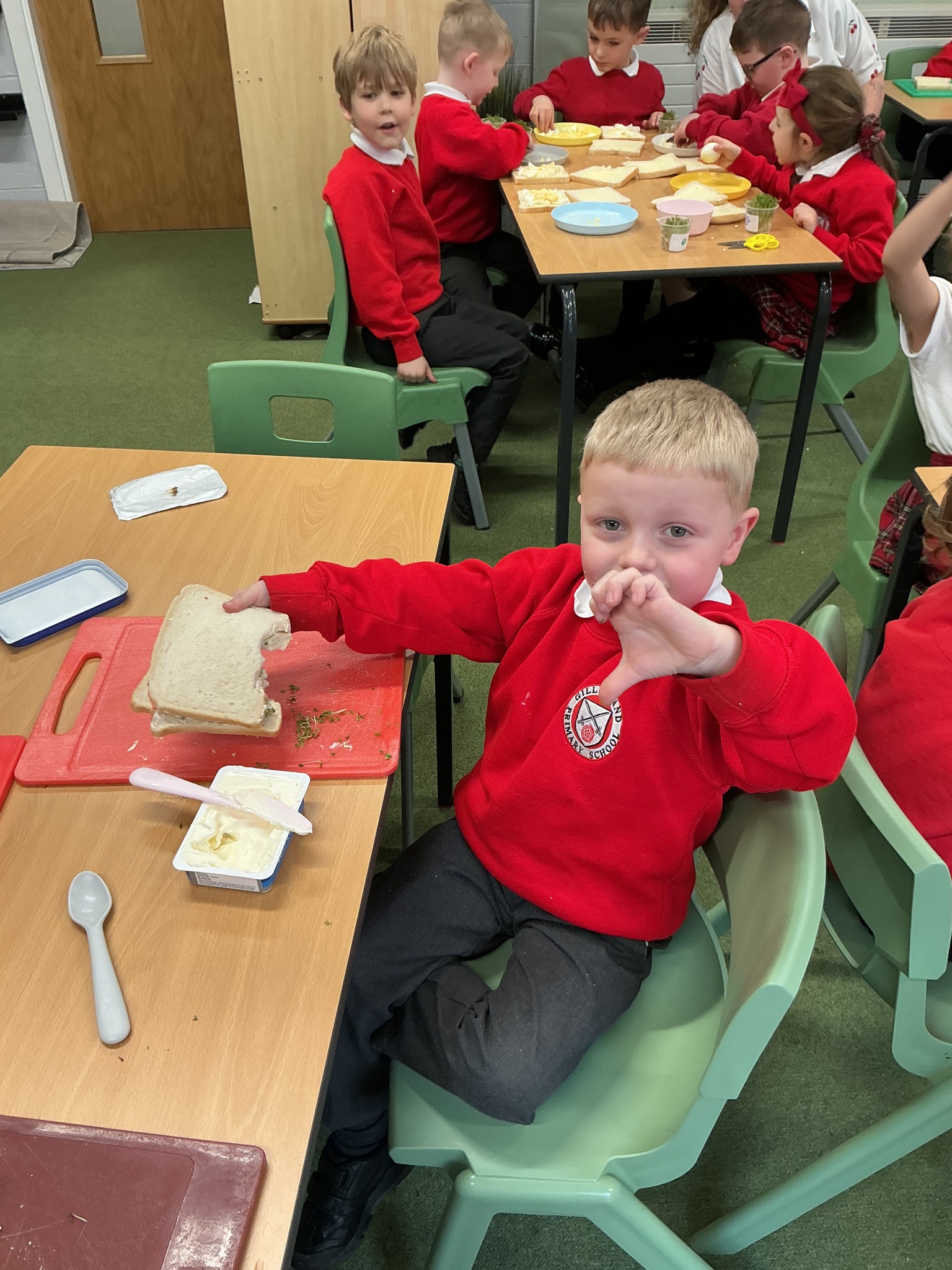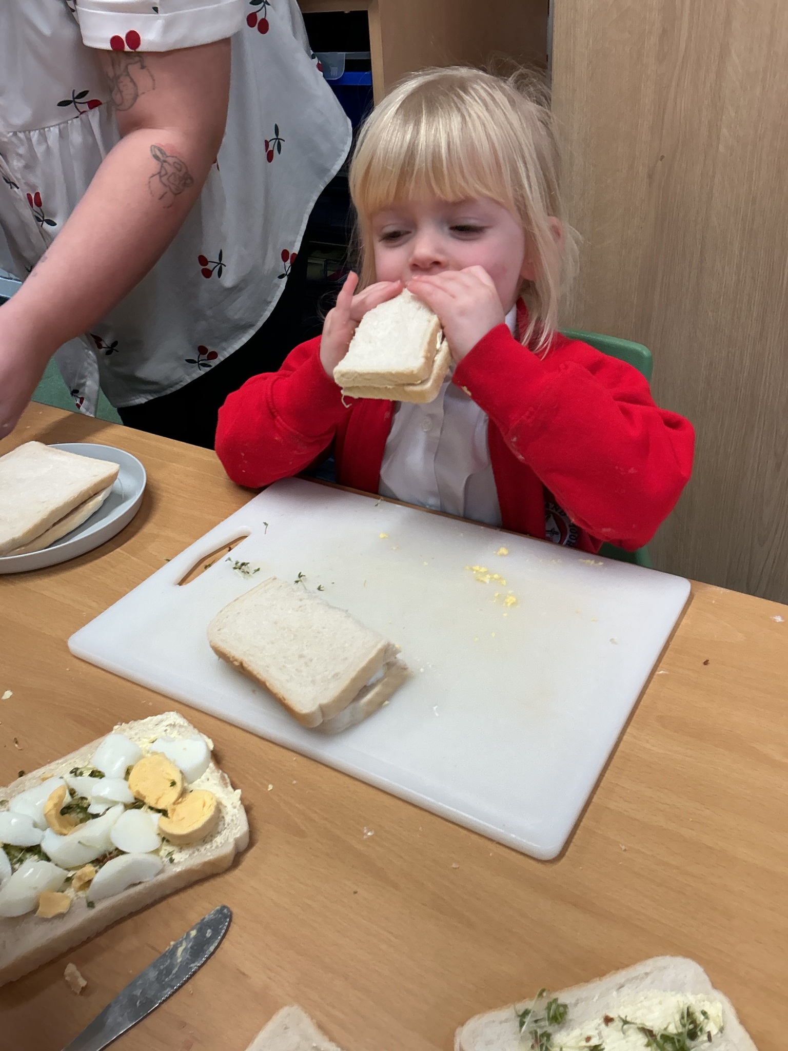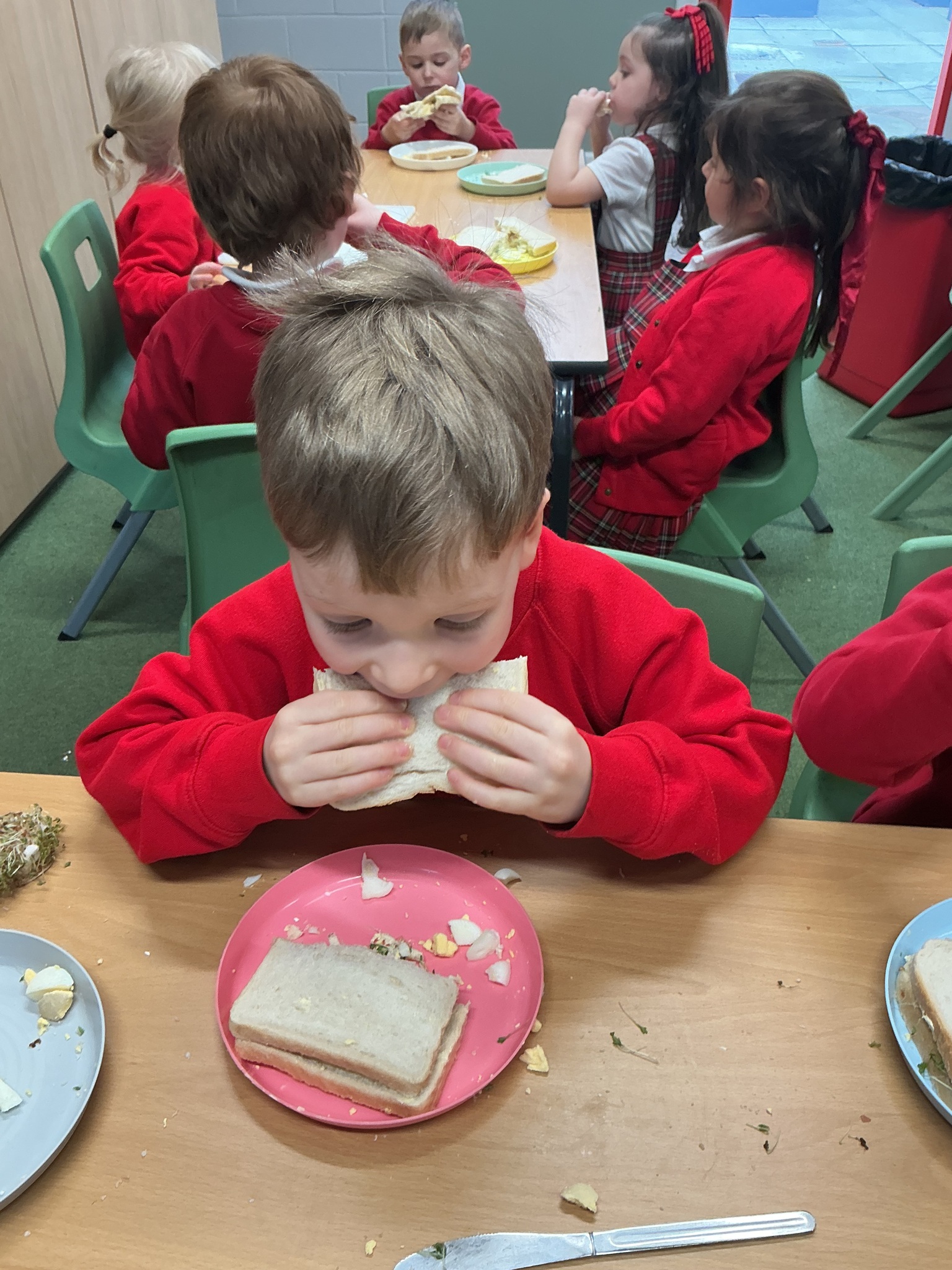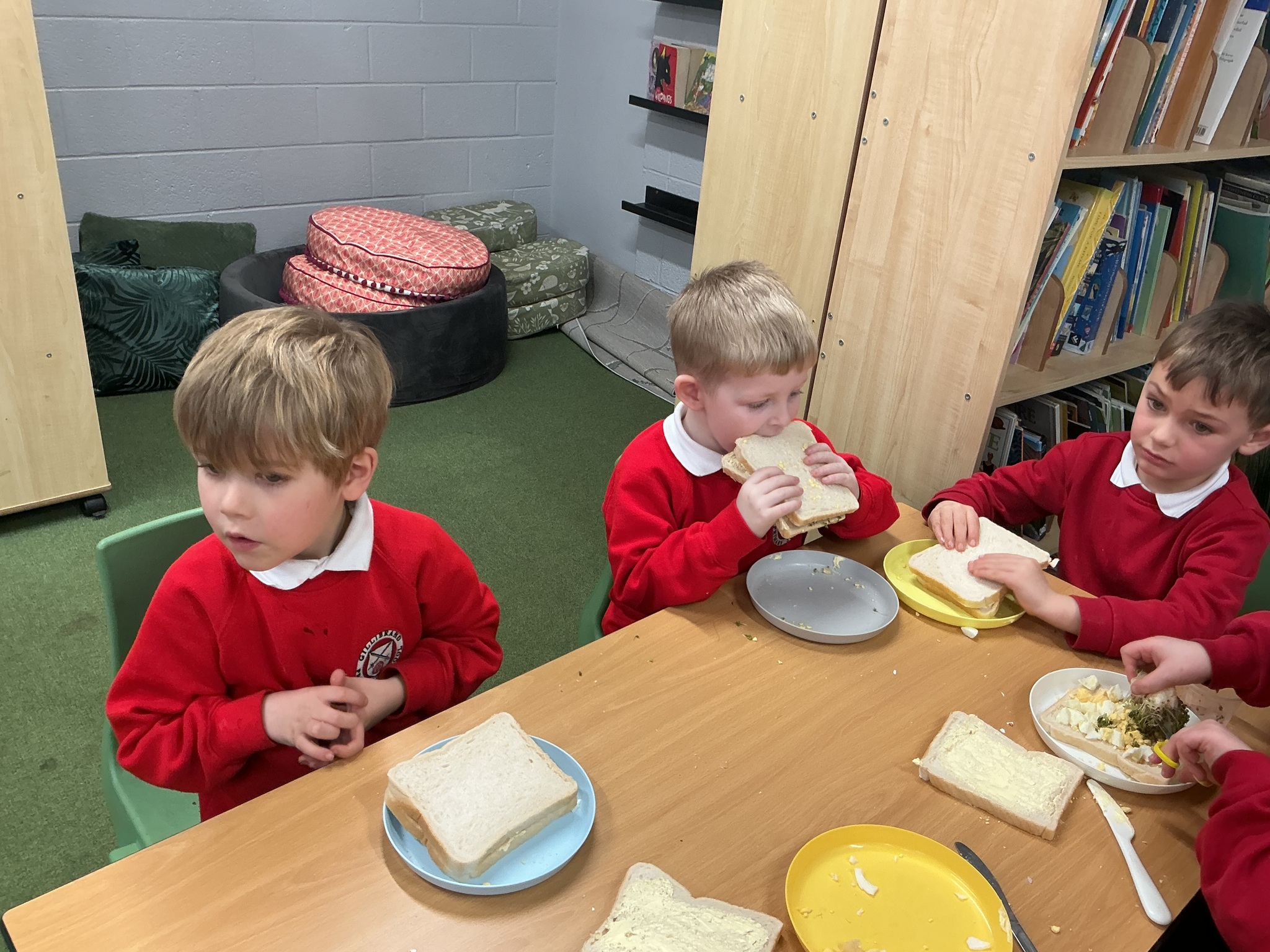 Reception class have been developing their fine motor skills through a fun and practical cooking activity. The children made their own egg and cress sandwiches using cress they had grown themselves in class.