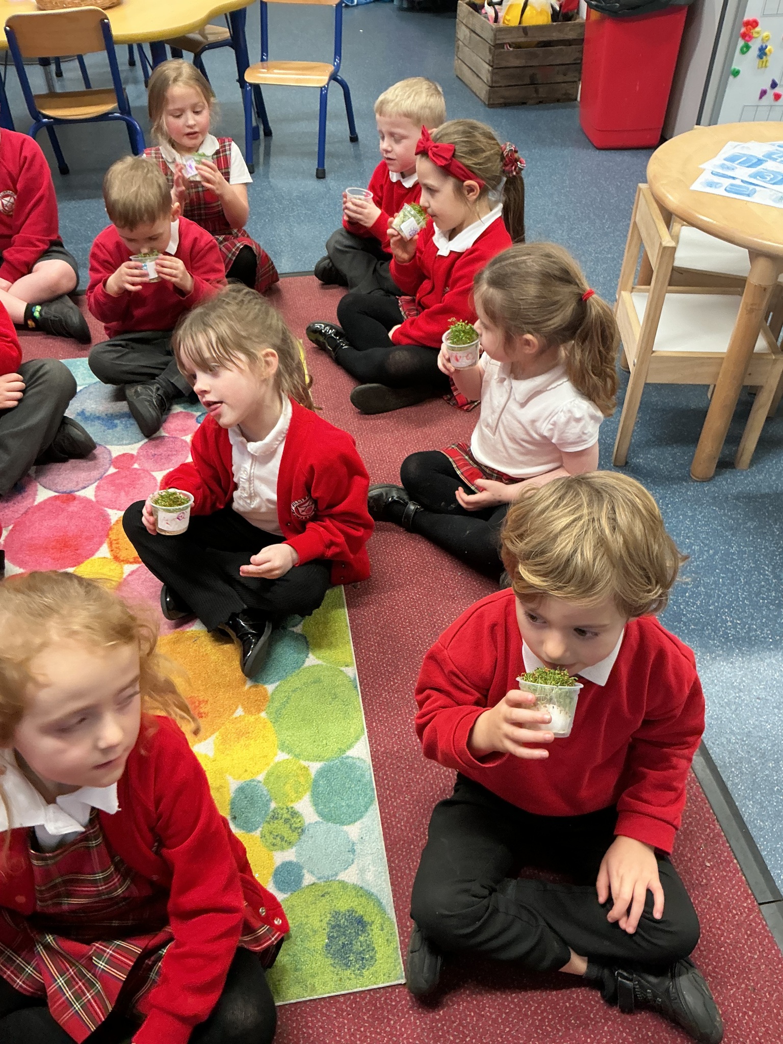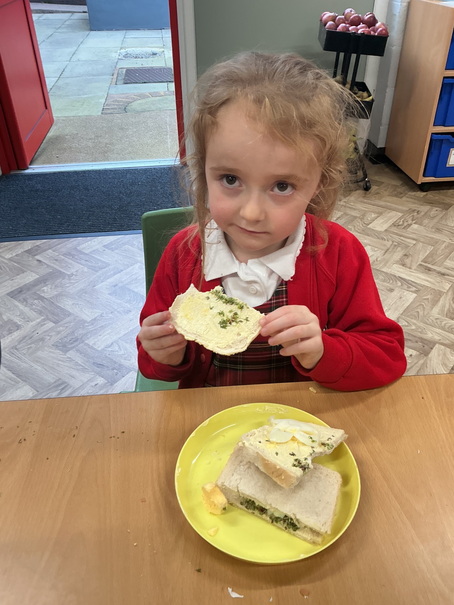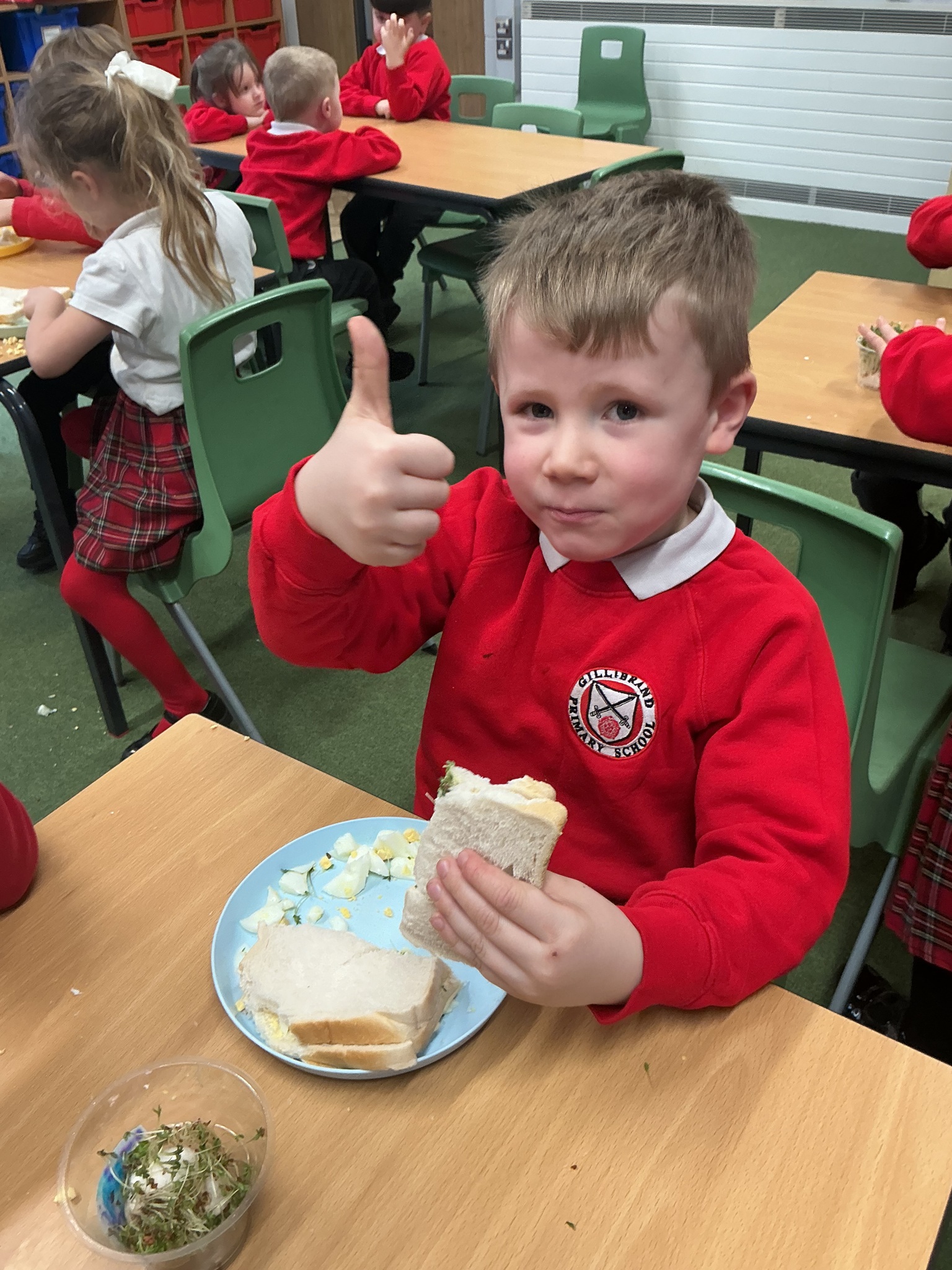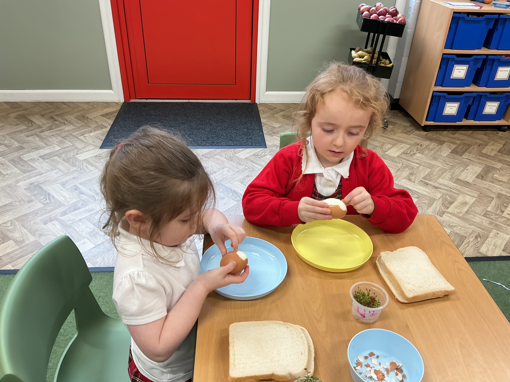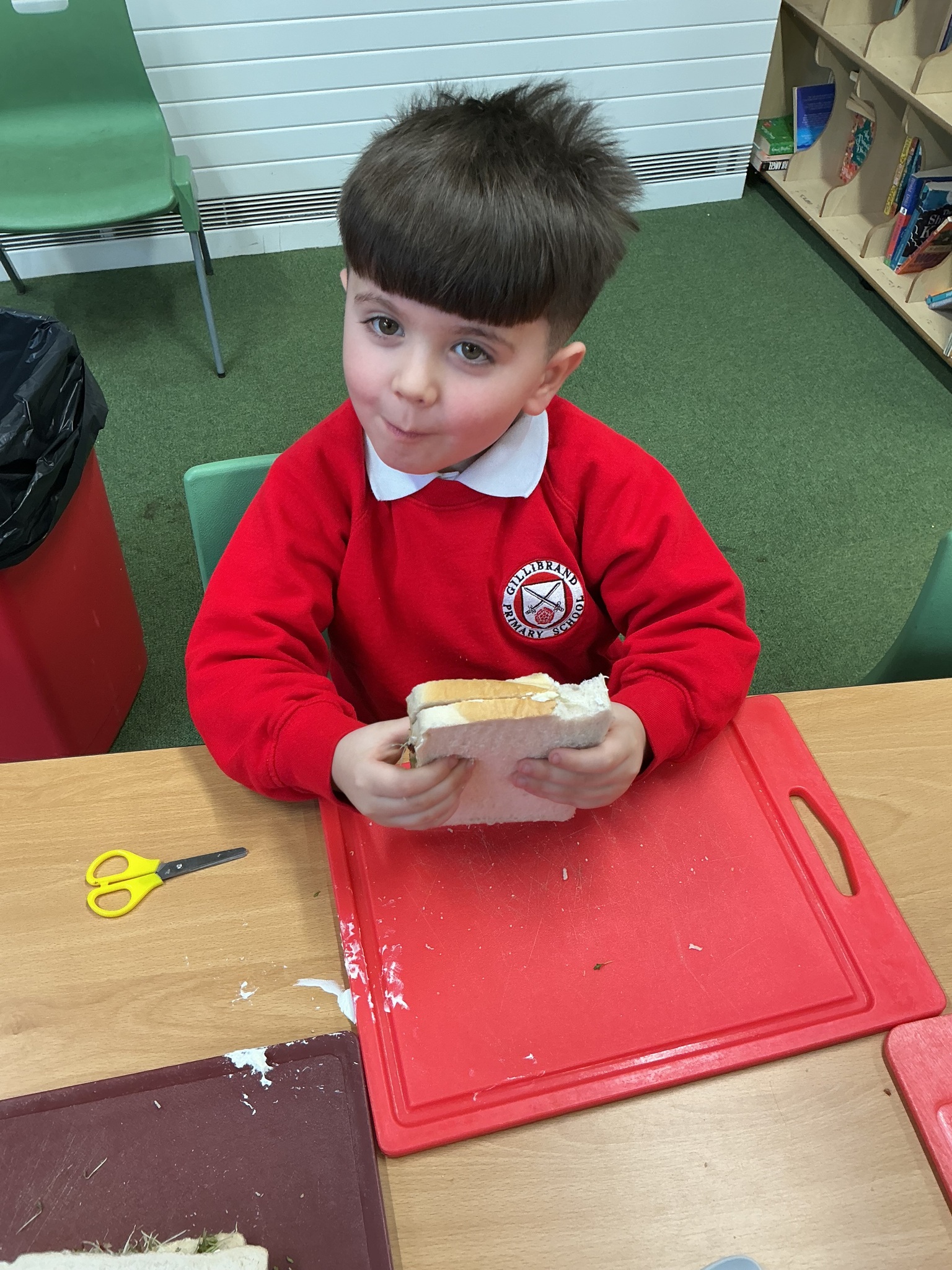Reception class have been developing their fine motor skills through a fun and practical cooking activity. The children made their own egg and cress sandwiches using cress they had grown themselves in class.