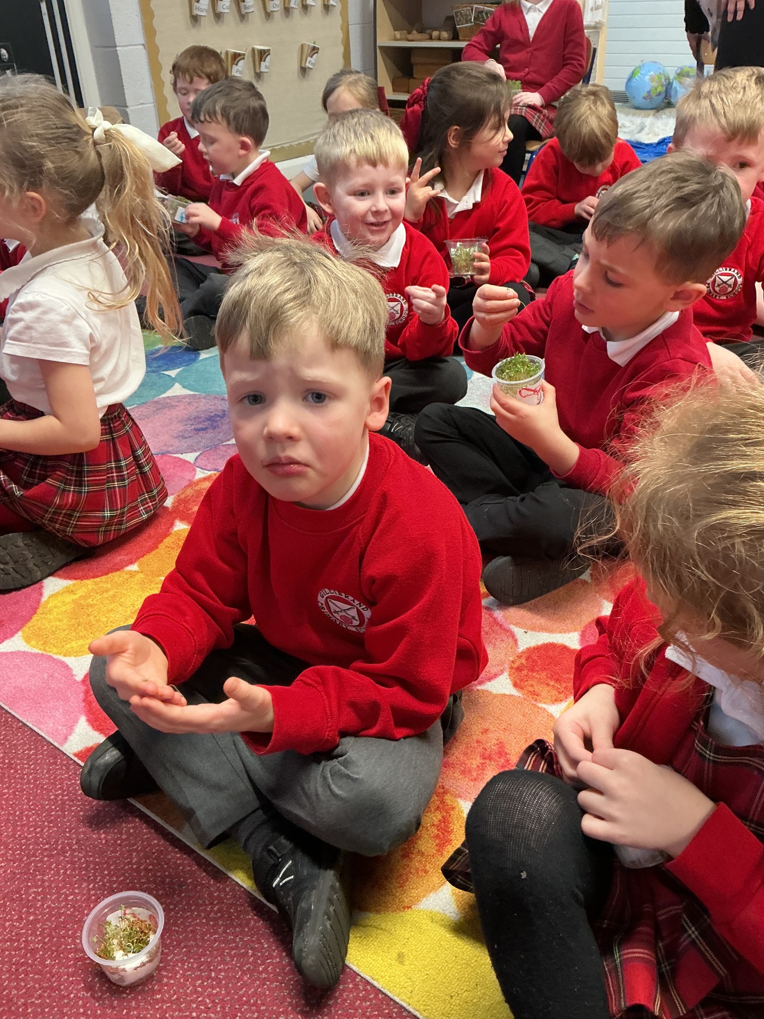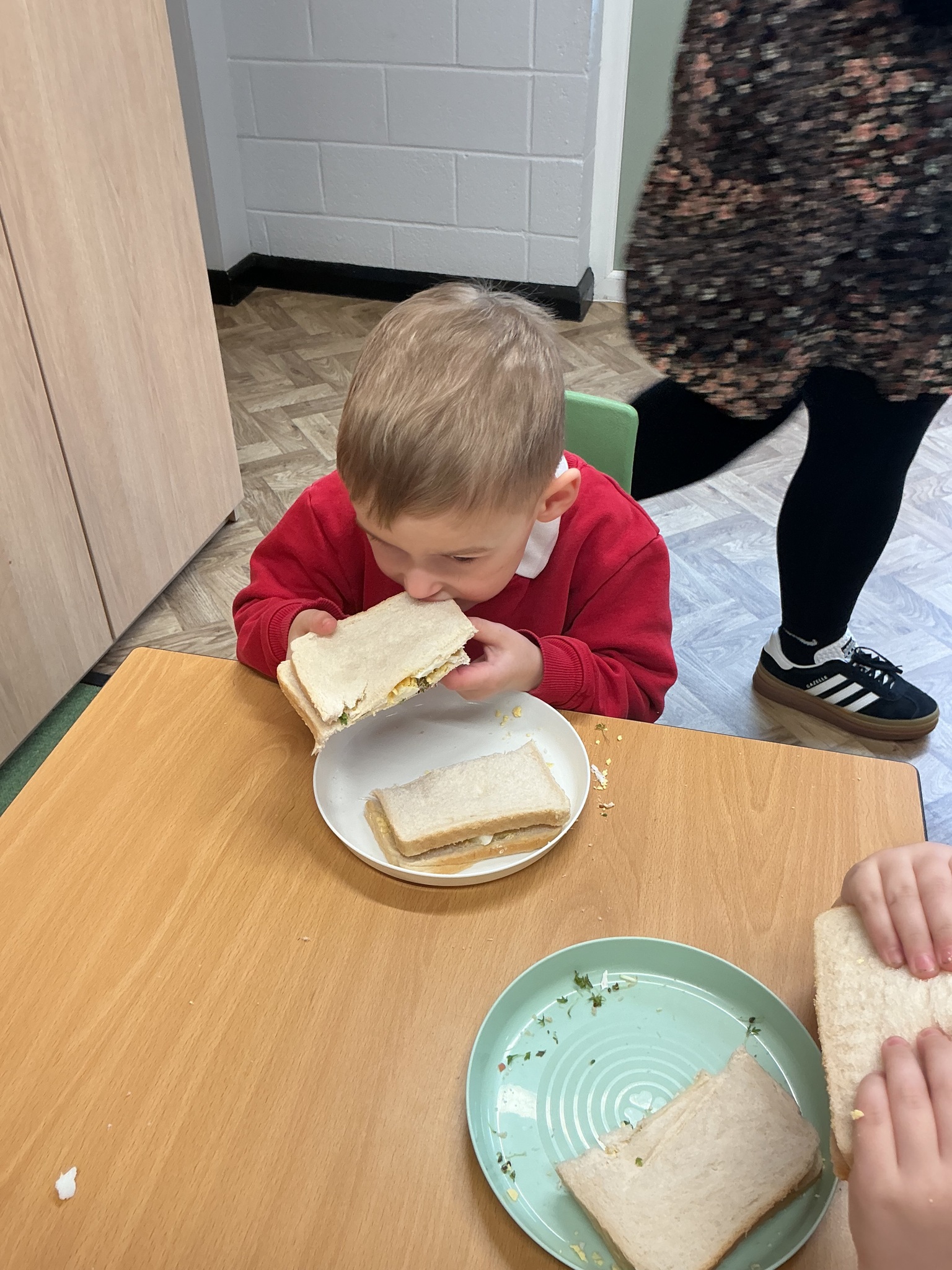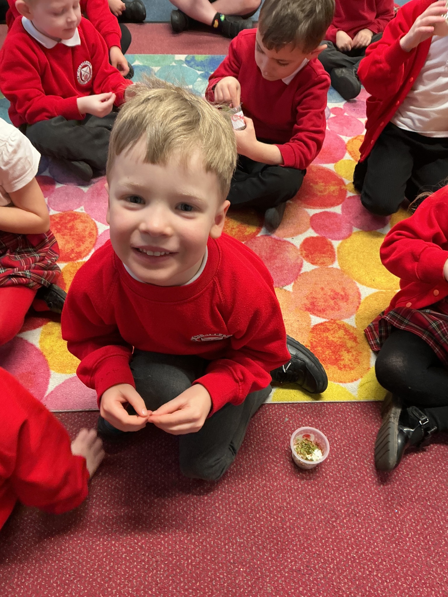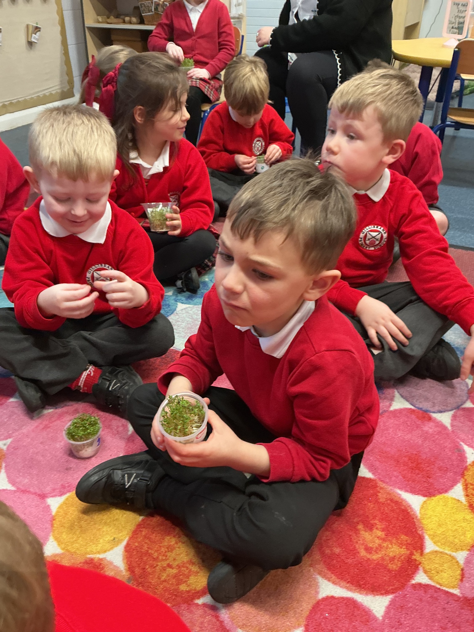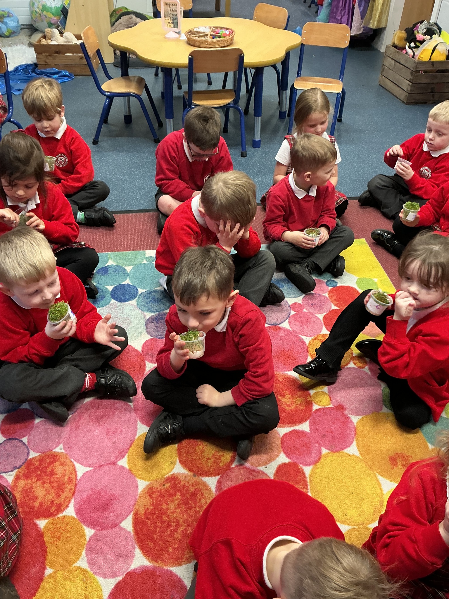 Reception class have been developing their fine motor skills through a fun and practical cooking activity. The children made their own egg and cress sandwiches using cress they had grown themselves in class.