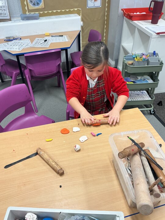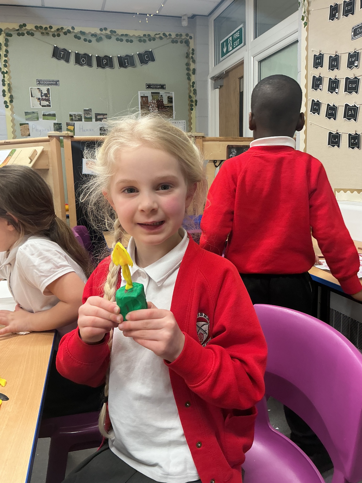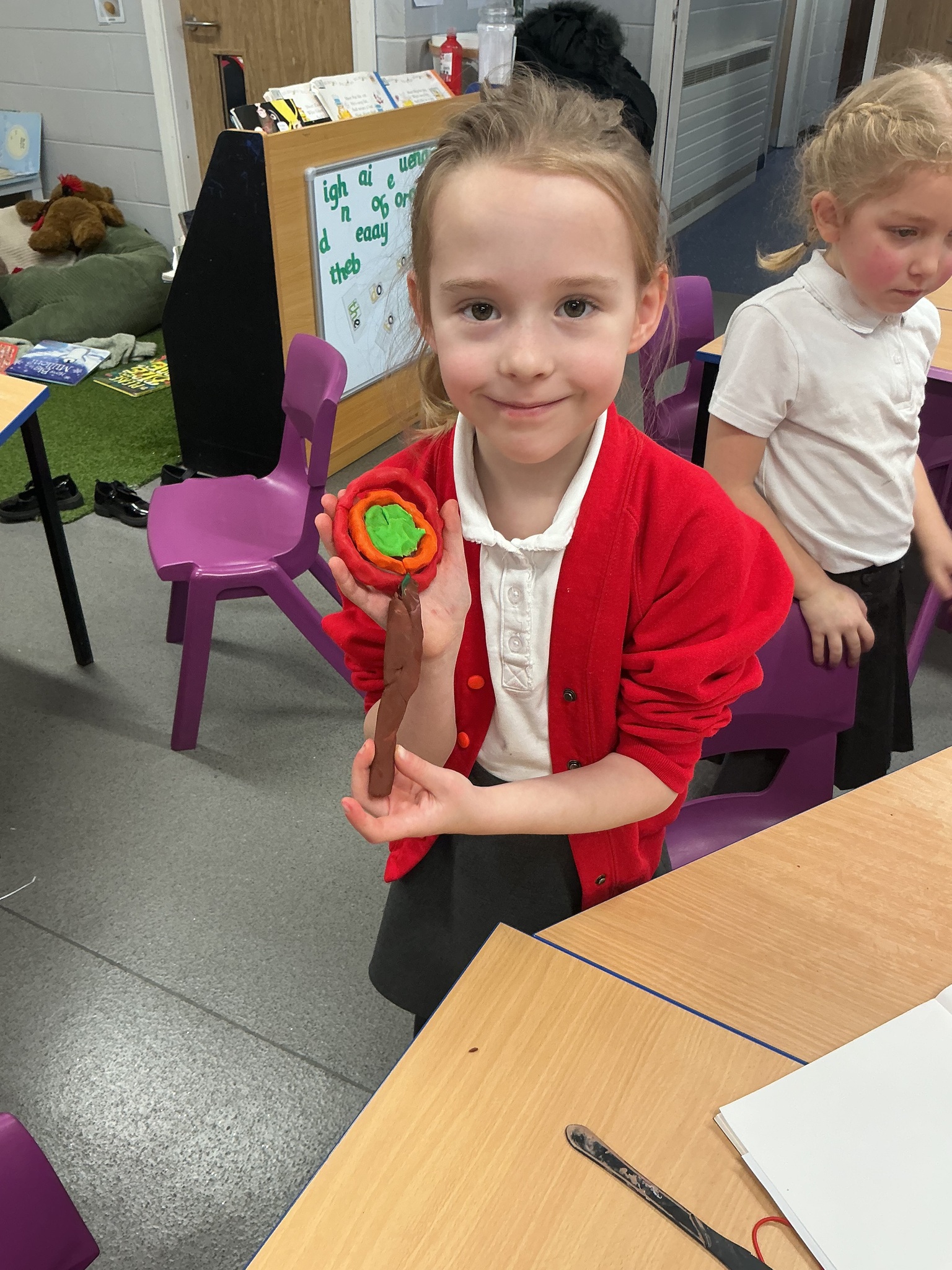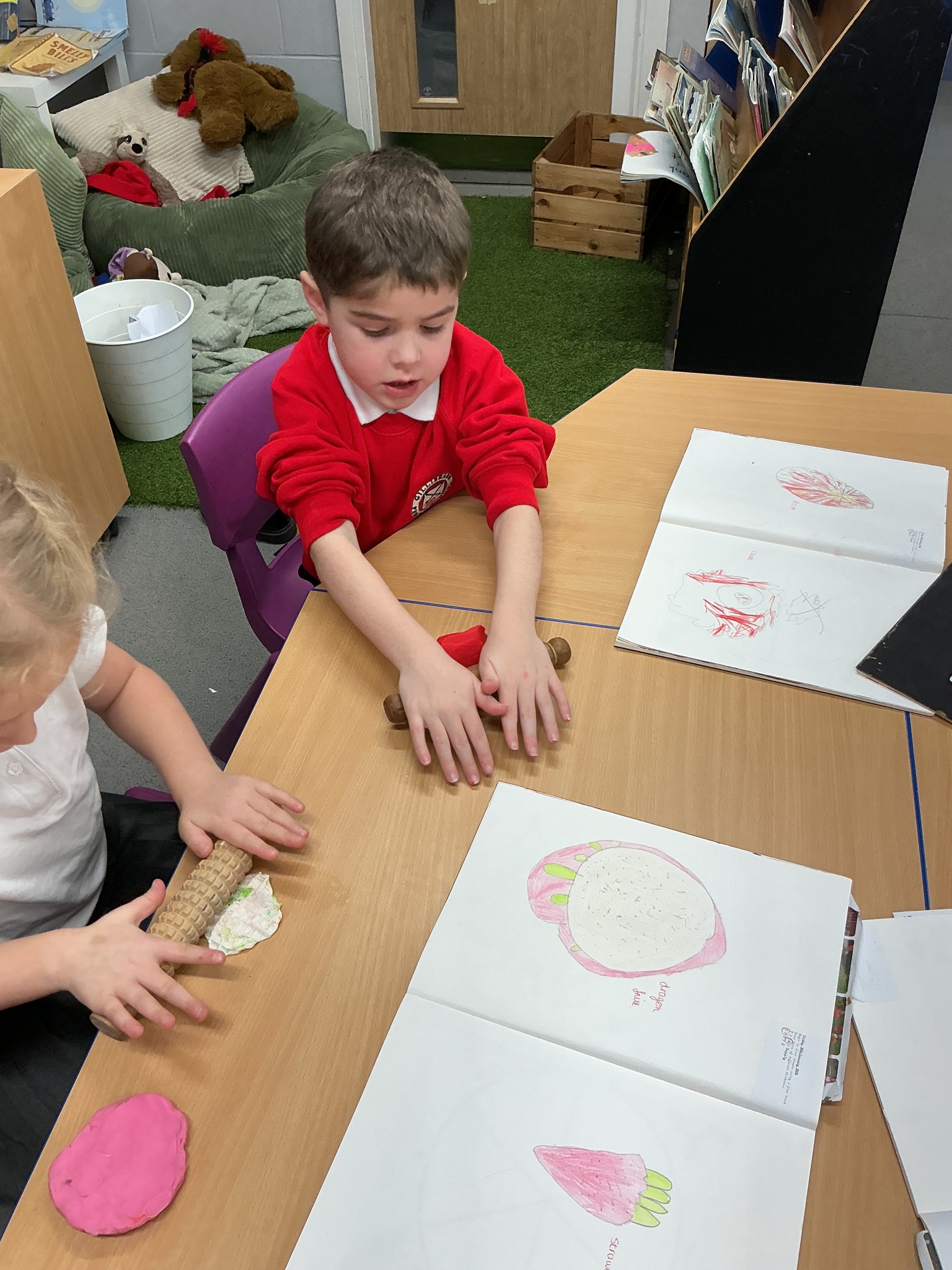 In art year 1 have been looking t sculpture. We looked at the artist Lucio Hierro who creates sculptures of food and the children created their own sculptures out of plasticine. They really enjoyed rolling and cutting the plasticine into different shapes to make their food sculptures.